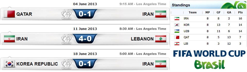Congratulations to IRAN for advancing to the 2014 FIFA World Cup BRAZIL