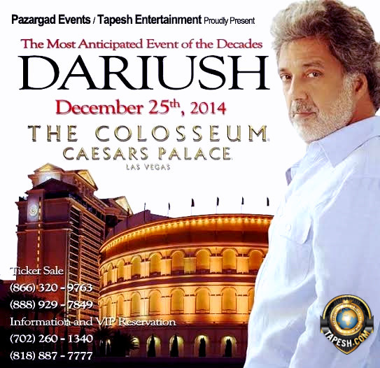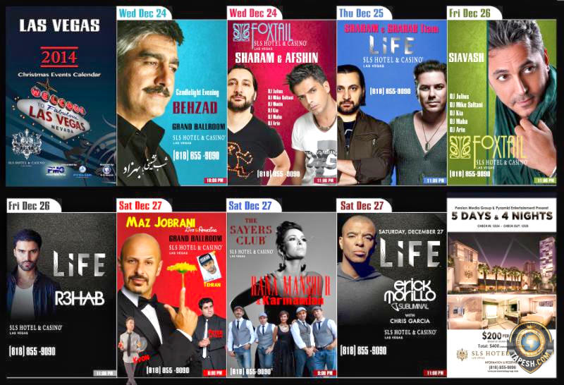 Persian Media Group & Pyramid Entertainment Present December 24th, 25th, 26th, 27th & 28th "5 Days & 4 Nights" An astonishing & Unforgettable Journey At The luxurious "SLS Hotel & Casino, Las Vegas" Including: deluxe Rooms, Festival of Stars and Concert "Only $249.00 per person + Tax & Service Charge"